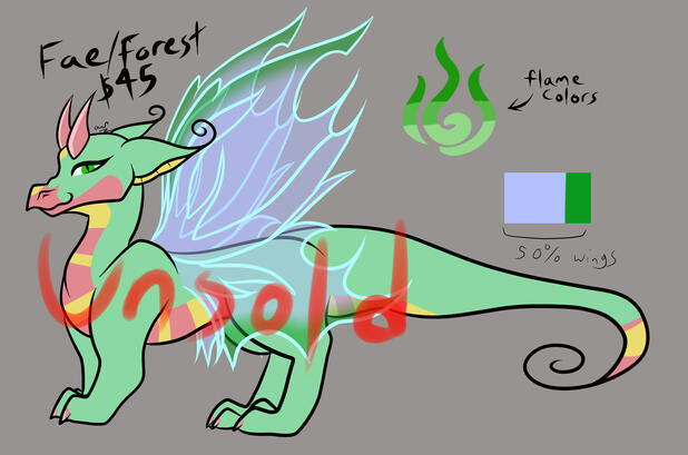 Suggested Backstory: Coreopsis is the hatchling of a forest and fae dragon that is fairly slow at flying due to the wings they gained from their fae ancestry. They have a green thumb and a love for mischief. Their fire has illusionary properties.